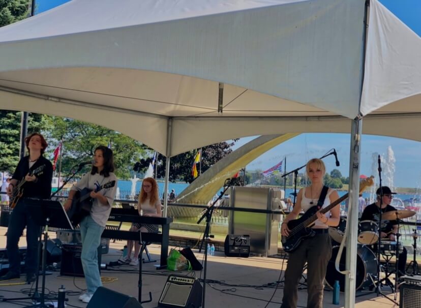 FogRoom is a local Kingston band comprised of all high school students (ages 15-18). They have been playing together since March of 2022 and are having so much fun! You may have seen FogRoom perform previously at the Spire or the Tett through the Juvenis Festival, as well as at the Frontenac Secondary School Coffee House, Welborne Avenue Public School Year End Family BBQ, or maybe downtown at the Leons Centre for the FSS Graduation. FogRoom most recently played at Daft and Mackinnon Brothers Brewing, Spearhead Brewing, outside the Visitor Information Centre and in Confederation Park.