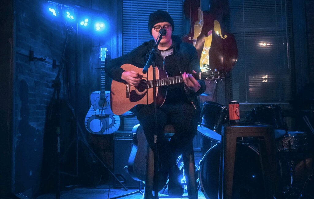 A solo acoustic performance by Adam Chartrand of Voyager on the patio at The Mansion.
