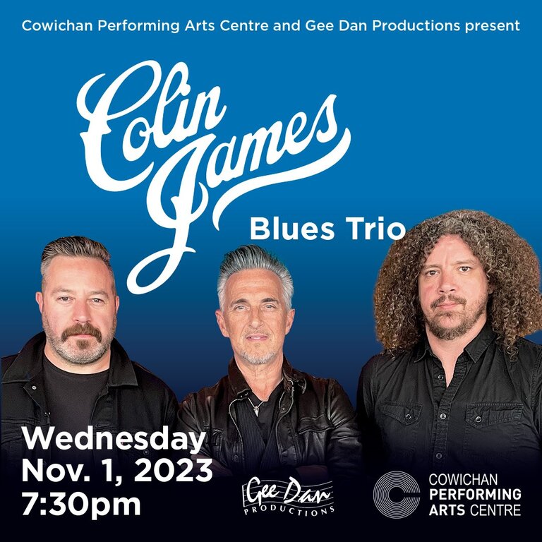 The Cowichan Performing Arts Centre and Gee Dan Productions are proud to present the Colin James Blues Trio on Wednesday, November 1 at 7:30pm.