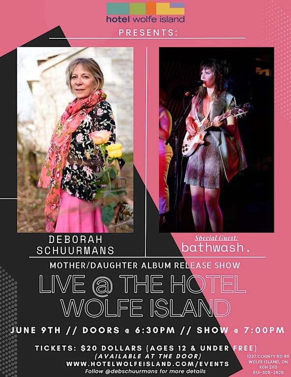 We are thrilled to announce the much-anticipated ALBUM RELEASE SHOW featuring the incredible Classical Pianist Deborah Schuurmans, from Kingston, ON, and the enchanting Folk Pop solo artist Bathwash, hailing from Ottawa, ON. But what makes this event truly special is the undeniable familial connection between the two artists—Bathwash is none other than Deborah's talented daughter, Jazmine! Together, they will take the stage at The Hotel Wolfe Island on none other than beautiful Wolfe Island to showcase songs from their respective albums, both recorded this past winter at the legendary Bathouse Recording Studio, home of the Tragically Hip.