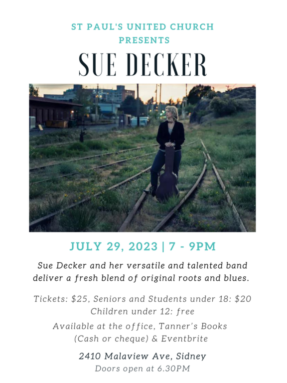 Physical tickets at: St. Paul's United Church, Sidney BC, Tanner's Books