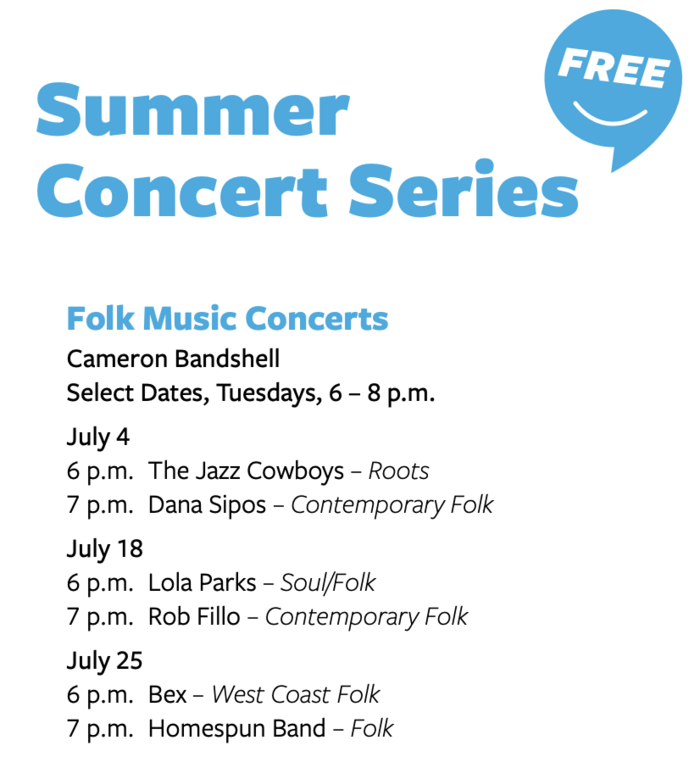 Full City Vibes Summer Concert Series event listings here: https://www.victoria.ca/assets/Departments/Parks~Rec~Culture/Culture/Events~and~Festivals/CityVibe/CityVibe%202023%20DIGITALMay%2030.pdf