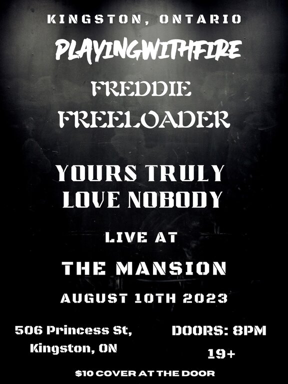 Playing with Fire, Yours Truly, Freddie Freeloader @ The Mansion Aug 10 2023 - Jan 9th @ The Mansion