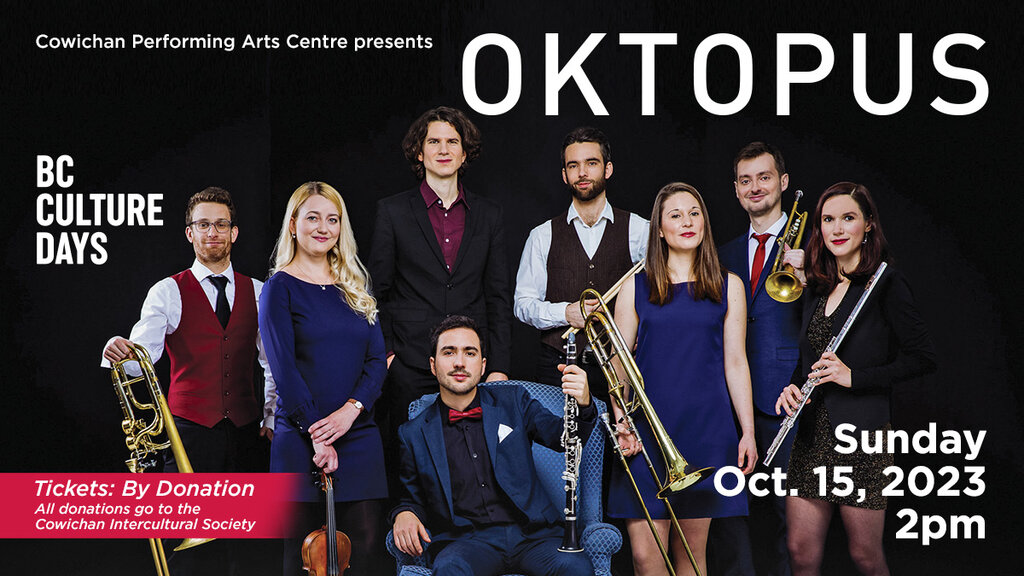 The Cowichan Performing Arts Centre is proud to present Oktopus on Sunday, October 15 at 2pm as part of BC Culture Days. This event is free and donations are encouraged - all proceeds will go to the Cowichan Intercultural Society. Tickets must be reserved in advance by phone or in-person at the Ticket Centre as seating is limited.