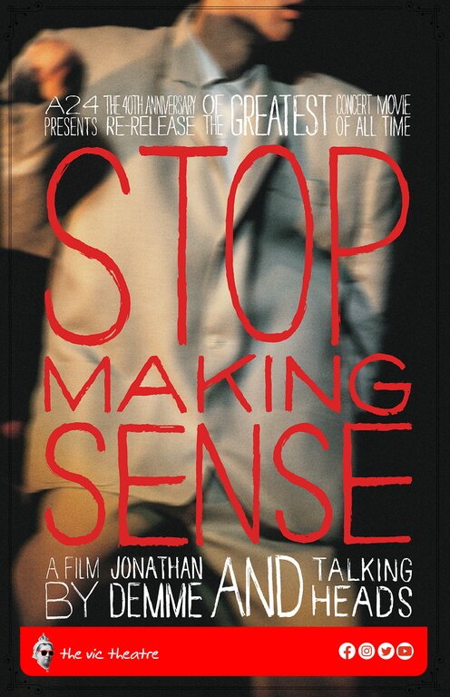 Newly restored picture and sound and released to coincide with its 40th anniversary, the 1984 film was directed by renowned filmmaker Jonathan Demme (Silence of the Lambs). Considered by many critics to be the greatest concert film of all time, the live performance was shot over the course of three nights at Hollywood’s Pantages Theater in December of 1983. The film features a captivating selection of Talking Heads’ most unforgettable songs, performed with unmatched passion and precision. From “Burning Down the House” to “Once in a Lifetime” and “Psycho Killer,” Stop Making Sense musical revelation that will have you dancing in your seat.