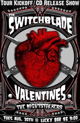 The Valentines are gearing up for their first coat-to-coast Canadian tour with a kickoff show that doubles as a CD Release Party. With Calgary's Surf/Psycho-Billy Punk rockers The Nightstalkers. www.switchbladevalentines.com