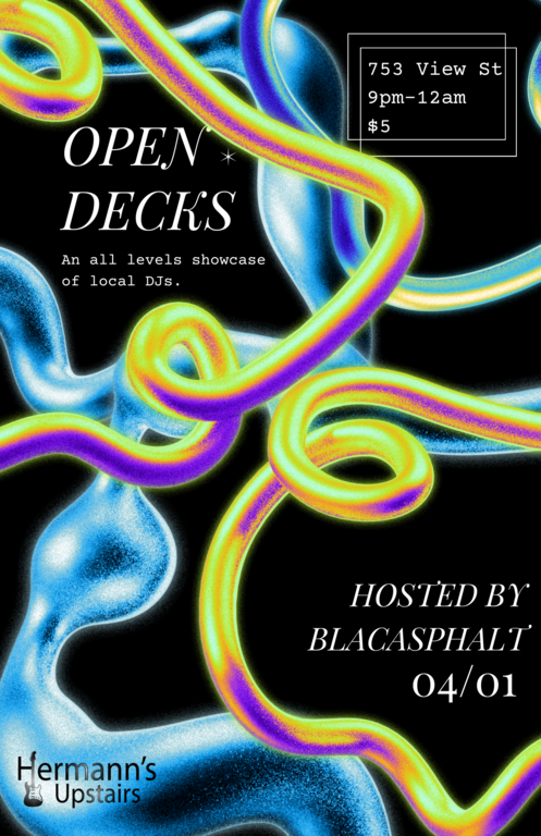 Open decks is a community club night focused around giving local DJ's the space to connect, dance and share music. Join us in celebrating one year of open decks!