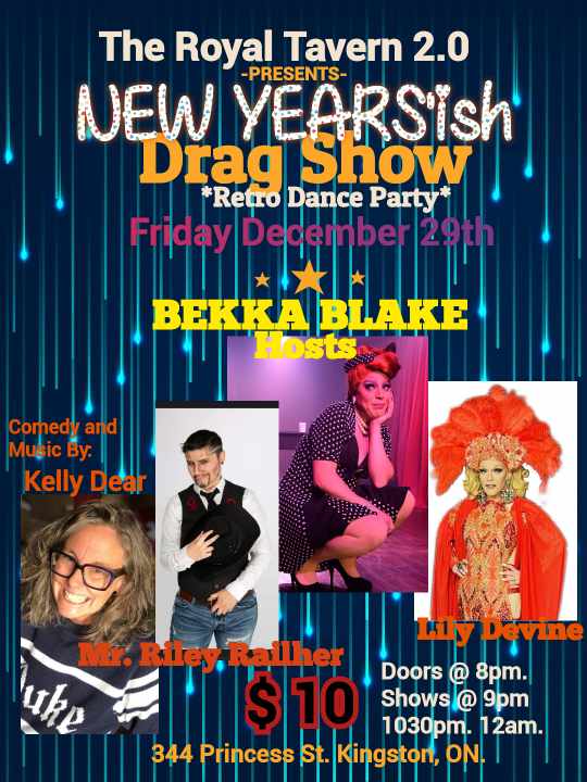 A Night of Fantastic Entertainment. LAUGHS, Dancing and Drinks with your Hostess Bekka Blake. The Showgirl Lily Devine and the Incredibly handsome (and Newly Engaged!) Riley Railher... Comedy and Music Stylings by Local Legend Kelly Dear. Come party with us. Only $10 at the door (cash preferred for cover). Venue is Fully accessible from the Parking Lot on Brock.