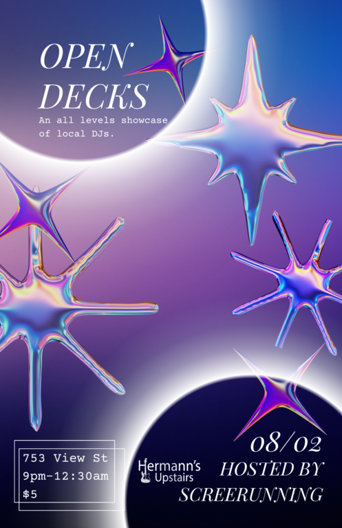 Open decks is a community club night focused around giving local DJ's the space to connect, dance and share music. Join us in celebrating one year of open decks!