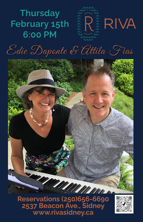 Enjoy a very special dinner night out featuring Edie singing with Attila Fias on the grand piano at RIVA. Reservations recommended 250-656-6690