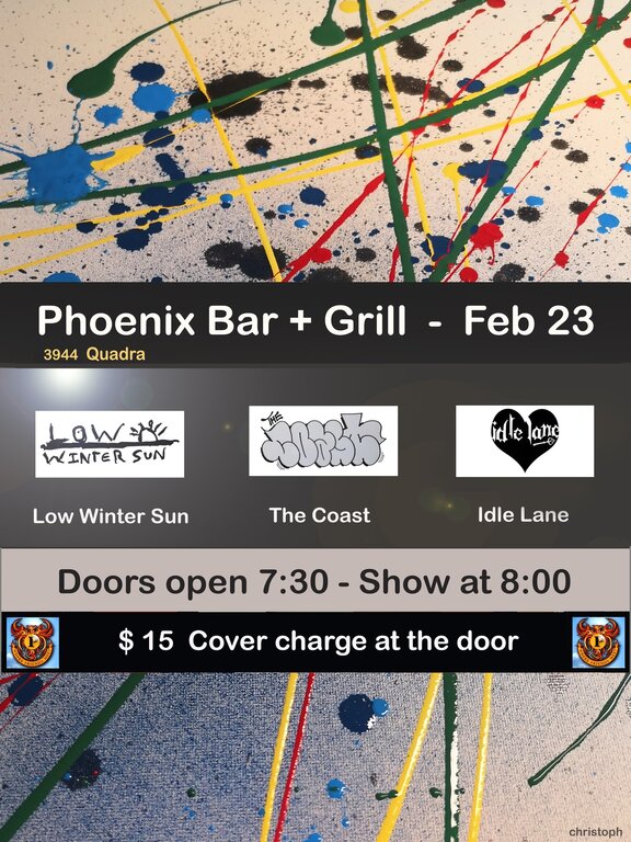 Local rock in three flavours:: Idle Lane, The_Coast, Low Winter Sun @ The Phoenix Bar and Grill Feb 23 2024 - Jan 2nd @ The Phoenix Bar and Grill