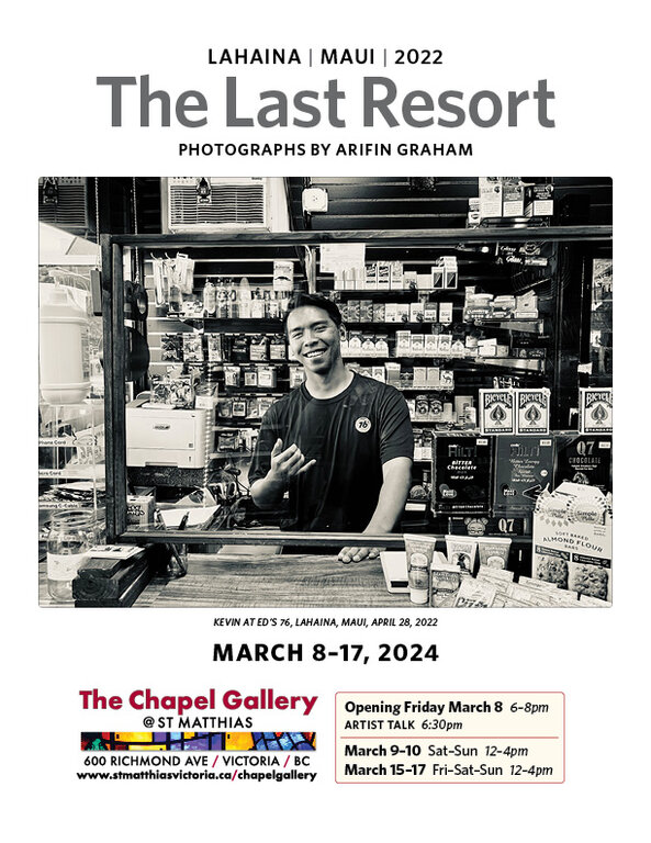 On Earth Day 2022, in a moment of inspiration, Arifin began the series of black & white portraits of the people of Lahaina and Maui, which form the nucleus of his upcoming show at The Chapel Gallery in Victoria.