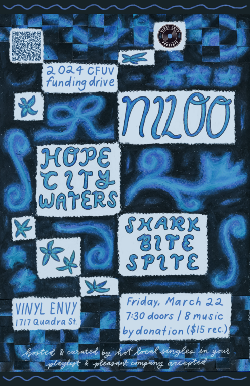 CFUV Funding Drive @ Vinyl Envy: Niloo, Hope City Waters, shark bite spite @ Vinyl Envy Mar 22 2024 - Feb 21st @ Vinyl Envy