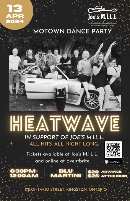 Come join us on Sat, Apr 13, 2024 at 8:30 PM for a night of groovy tunes and funky moves at BluMartini. Get ready to dance the night away to the best Motown hits while supporting a great cause. A huge thank you to the members of Heatwave and BluMartini for supporting The Joe Chithalen Memorial Musical Instrument Lending Library!!