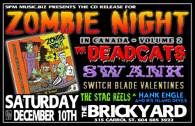 CD RELEASE FOR ZOMBIE NIGHT IN CANADA! VOL 2!: The Deadcats, Swank, SWITCHBLADE VALETINE'S, The Stag Reels, HANK ANGEL and his ISLAND DEVILS @ The Brickyard Dec 10 2005 - Feb 12th @ The Brickyard