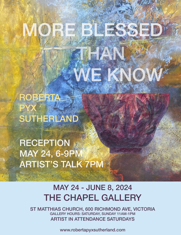 Visit the Chapel Gallery at St Matthias on Saturdays and Sundays 11:00 - 1:00 from May 24 - June 8.