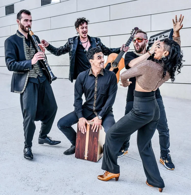 Qairo’s five multicultural artists embrace their unique musical expression, with travel being essential to their creative process. Deborah “La Caramelita” and singer Alejandro Mendía met in Sevilla, Spain in 2009. They joined forces with clarinettist and oud player Dorian Zavatta, who traveled by foot through Europe and the Middle East before settling in Turkey, and now France. Prominent in France’s world music scene, multi-instrumentalist Alex Carrasco enriches Qairo’s music with urban sounds, complemented by jazz-trained drummer Gaétan Diaz.