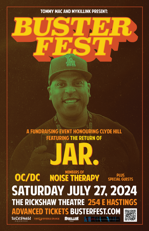 BUSTERFEST will take place on Friday, July 27 2024 at The Rickshaw Theatre in Vancouver, BC. The event will feature performances by JAR. with support from OC/DC, members of NOISE THERAPY, with more to be announced. All proceeds from the show will go to Clyde to help with expenses in this time of need.