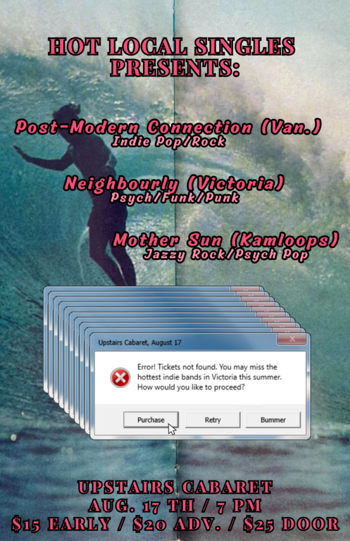 We are excited to announce a show that has been long in the making! Local sweethearts Neighbourly will join us in welcoming back Vancouver's Post-Modern Connection and Kamloops' Mother Sun for an night of eclectic indie rock fusion!