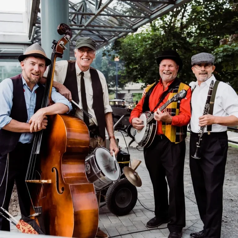 King of the Swingers has energized festivals, fairgrounds, street concerts, and parties with their upbeat, energized, (kinda twisted) approach to Dixie music for more than twenty years. With locals Steve Clarke, Marty Crapper, Stu Pike and Dawson Willsey, they’re ready to take you on a little trip down nostalgia lane. Crowds can be seen singing and tapping along as they relive songs of their respective pasts. From their humble beginnings as Westport’s Official Busking Band, Steevo, Dawg-son, Spiker, and M.C. Rapper laugh and shout their way through such classic Dixie songs as Obladi Oblada, Jocky Full of Bourbon, and Ain’t She Sweet.