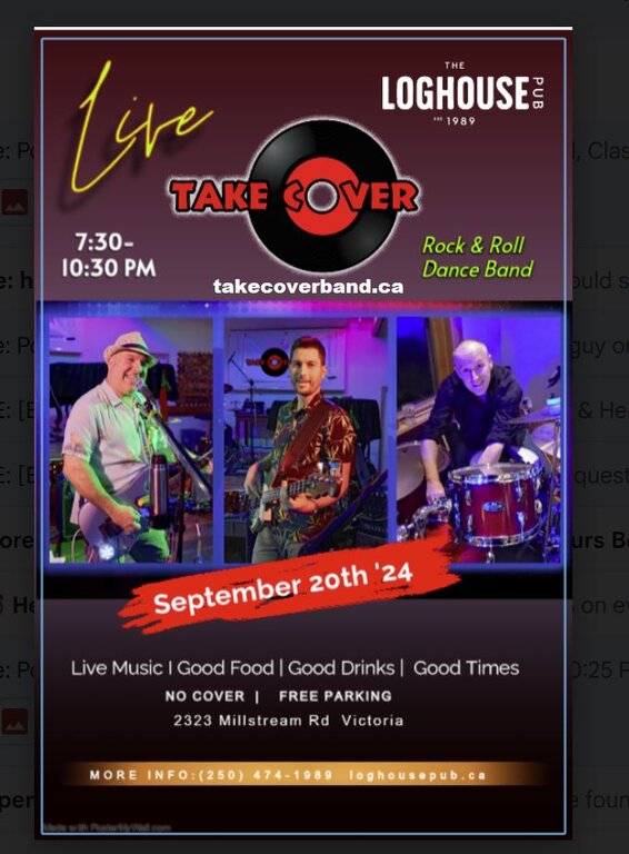 The latest iteration of Take Cover Band promises to rock the Loghouse like no other band. Your favourite hits from the 60s to the 90s. Don't miss this one!