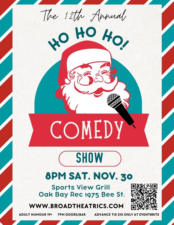 ADVANCE TICKETS are ONLY available at Eventbrite. All ticketing, group table requests and the Wait List are managed by Broad Theatrics Entertainment. Contact Broad Theatrics with inquiries, NOT the staff at Oak Bay Recreation.