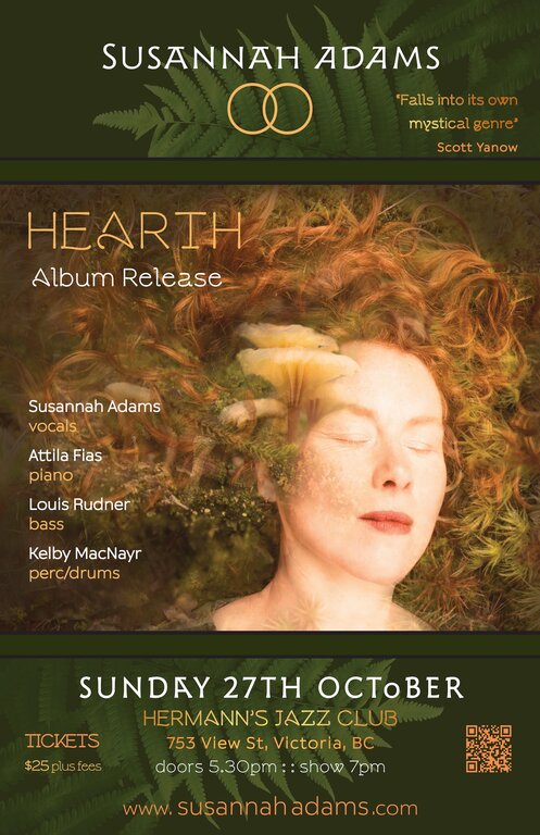 Gather around the imaginal hearth as jazz vocalist Susannah Adams returns to Hermann’s to spin us a beautiful dream to drift within. Riding upon her enchanting vocals we will travel through songs of deep mystery, to poetry set to spontaneous compositions, and to vibrant interpretations of classic jazz standards.