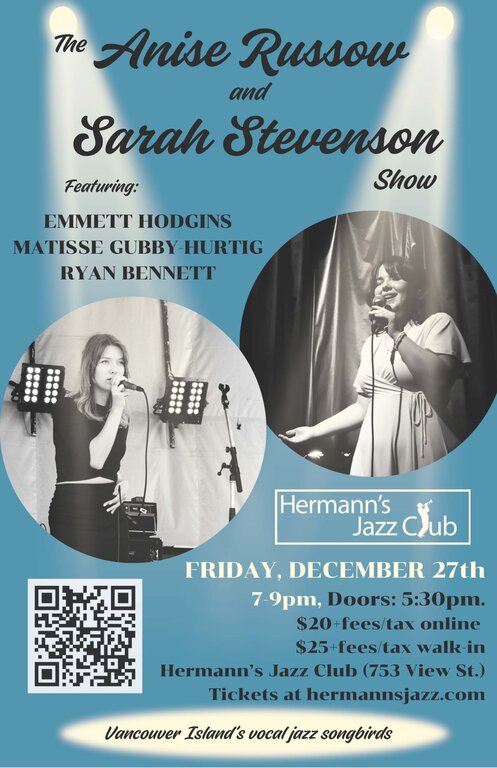 Fri. December 27th 2024 Hermann's Jazz Club Victoria BC $20-$25