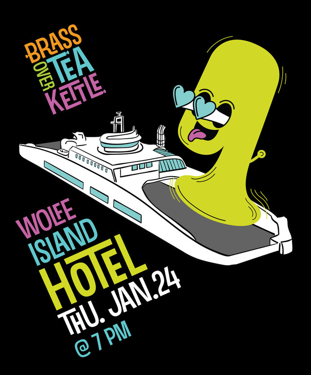 Formed in the summer of 2023, Brass Over Tea Kettle began with four swing band musicians from Kingston, Ontario, who shared a vision: create a high-energy brass band that could bring joyful, foot-stomping, music to venues of all sizes, from cozy pubs to large festivals. Inspired by the iconic brass bands of New Orleans, they searched far and wide for pop and dance music charts to build their repertoire and eventually started creating their own arrangements and mashups.