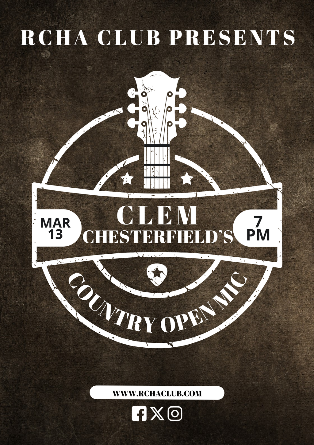 Clem Chesterfield's Country Open Mic - Feb 2nd @ The Club at the R.C.H.A.