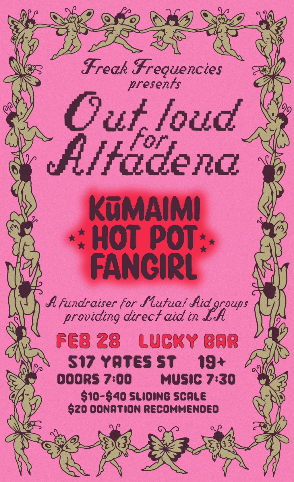 Out Loud for Altadena, with: KŪMAIMI, HOT POT, and Fangirl! A fundraiser for LA Mutual Aid - Feb 19th @ Lucky Bar