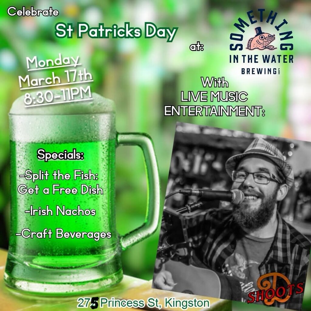 Come out to Something in the Water on Saint Patrick's day to further all your celebrations with plenty of craft beverages (and some food and drink that will fit the festive green theme!) as well as acoustic tunes to tap your toe to (and sing along or course!) starts at 8:30!