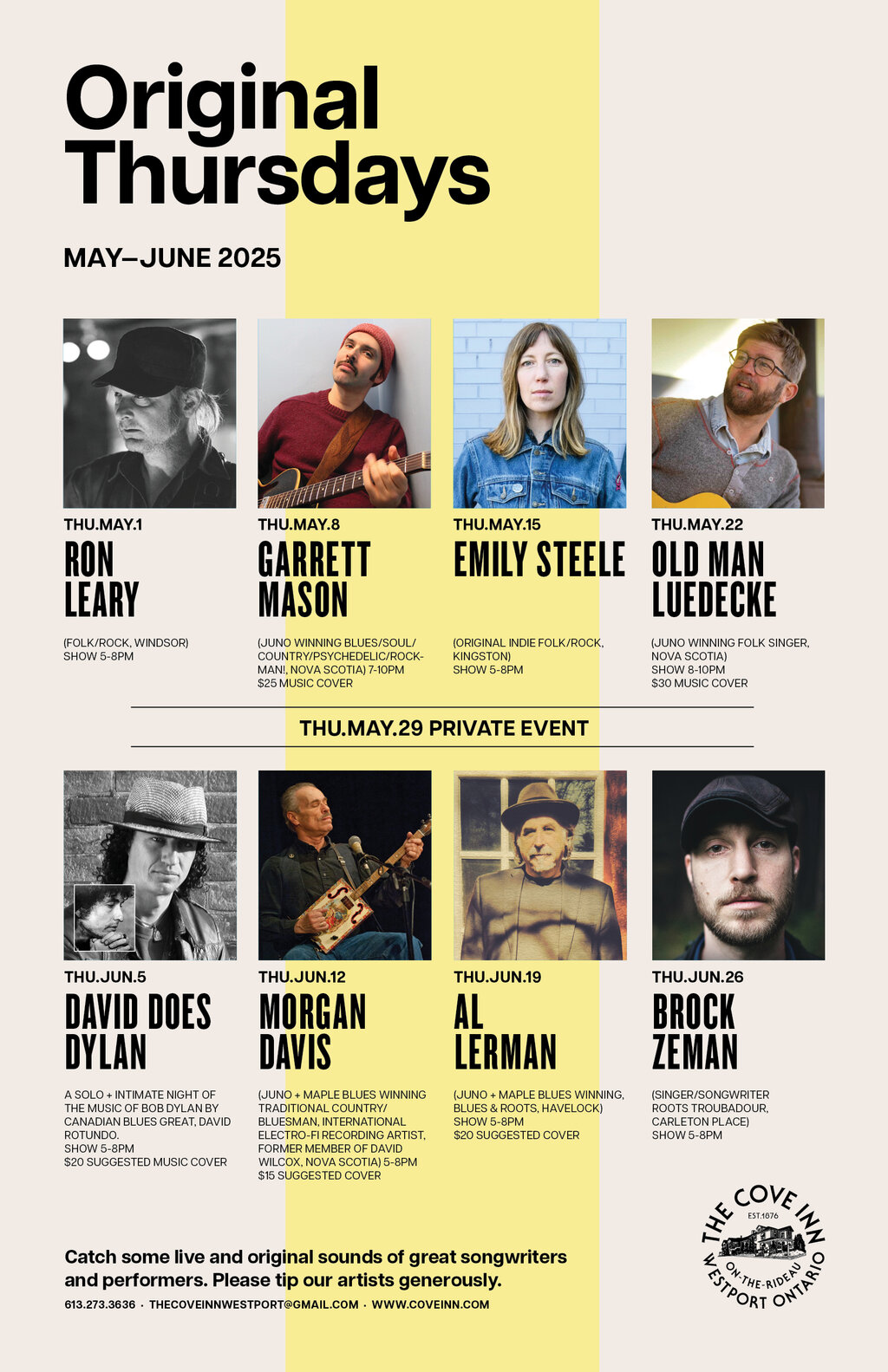 Thu. May 15th 2025 The Cove Inn Westport Ontario By Donation