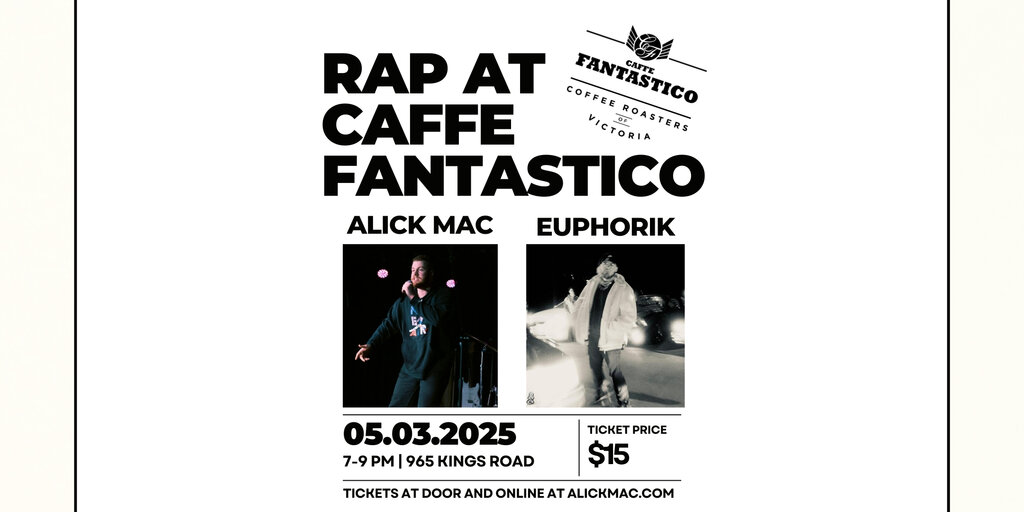 Alick Mac is rapper, singer and songwriter from the Comox, BC. Alick's style is defined by his honest, vulnerable lyricism. In 2024, Alick finished as the runner up in the Music In Motion Canada awards. He has also been an opening act for renowned artists such as Bankrol Hayden and Terrell Safadi.