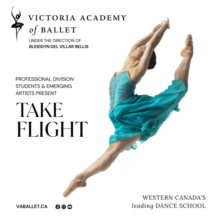 Take Flight is a vibrant celebration of talent and dedication, featuring a dynamic program of ballet and contemporary works. Enjoy excerpts from Don Quixote and Swan Lake, alongside choreography by VAB’s celebrated faculty including the world premiere of IT BEGAN WITH THIS by KerryLynn Turner, Head of Post-Secondary Bridge Program, and new creations by Angela Mousseau and Marijka Stanowych. This inspiring evening also marks a milestone for our graduating Bridge Program dancers, taking their final bow before launching into professional careers. Join us in celebrating the next generation of dance artists