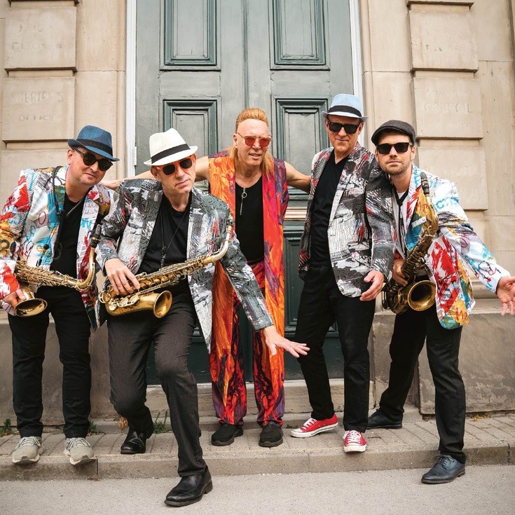 The Shuffle Demons are a high-energy Canadian band that blends virtuosic jazz and funk playing with eye-catching costumes to produce an incredible show. A hit at festivals all over the world, the Shuffle Demons are a crowd-pleasing, full-on musical group that backs up wild stage tricks with phenomenal playing by some of Canada's most talented musicians. Still capturing audiences’ imaginations with their wacky antics after three decades, the Shuffle Demons features a great line-up of players that includes JUNO Award-winning saxophonist/vocalist Richard Underhill. They just came out with a new album in 2025, Are You Really Real. Expect an exciting, no-holds-barred performance that feature wild romps in the crowd, free jazz moments, danceable funk, poetry, killer solos and more! Matt Lagan vocals/saxophone, Kelly Jefferson vocals/saxophone, Mike Downes vocals/bass, Stich Wynston vocals/drums