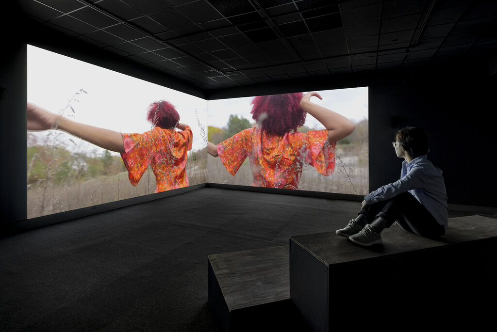 *Image Credit: Jessica Karuhanga, being who you are there is no other, 2018, two-channel video projection. Photo courtesy of KWAG, by Toni Hafkenscheid. Jessica Karuhanga: Blue as the insides, Kitchener-Waterloo Art Gallery, 8 April - 6 August 2023.
