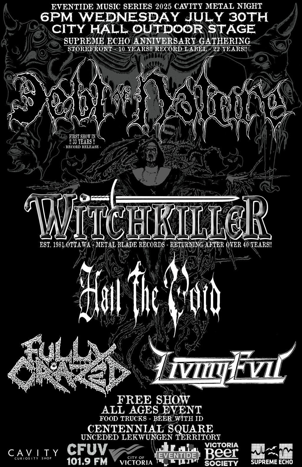 FREE OUTDOOR METAL SHOW @ CITY HALL: Living Evil, Fully Crazed, Hail The Void, Witchkiller, Debt of Nature @ Centennial Square Jul 30 2025 - Feb 11th @ Centennial Square