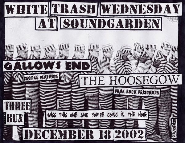 White Trash Wednesday! If you miss this one youre going in the hole!: The Hoosegow, Gallows End @ Soundgarden Dec 18 2002 - Feb 13th @ Soundgarden