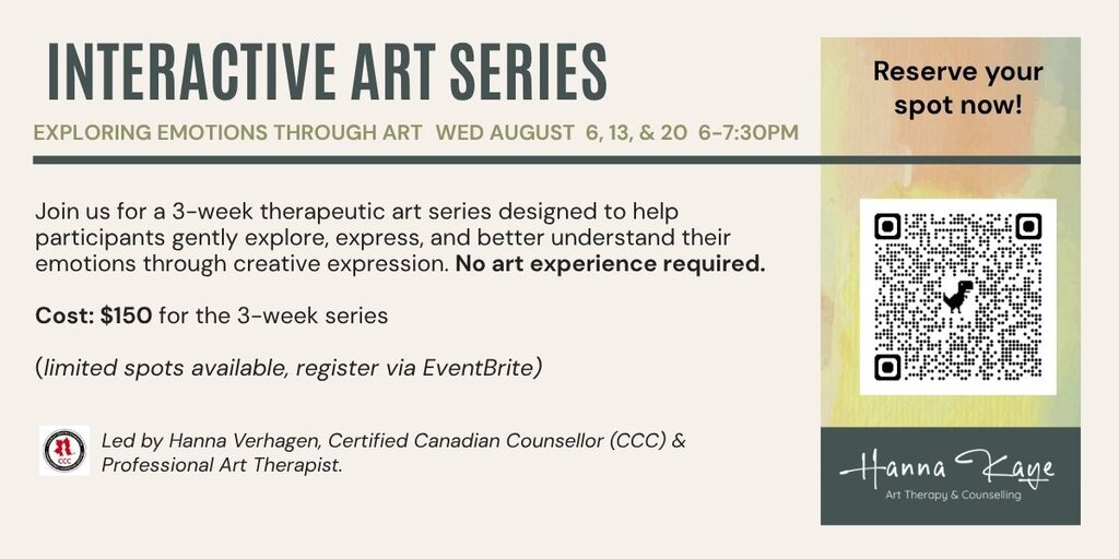 šŸ“© Reserve your spot for free – Hanna Kaye Art Therapy & Counselling will follow up by email with paperwork & payment options.