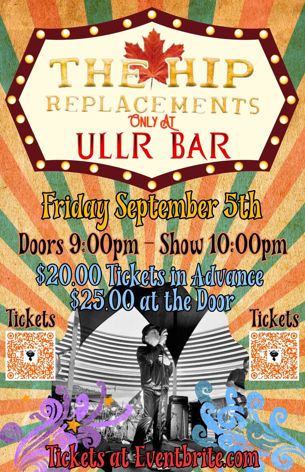The Hip Replacements Back at Ullr Bar Come join us for a night of groovy tunes as The Hip Replacements take the stage at Ullr Bar! Get ready to dance the night away to all Tragically Hip classic hits. This in person event is not to be missed! Grab your friends, grab a drink, and let’s make some unforgettable memories together.