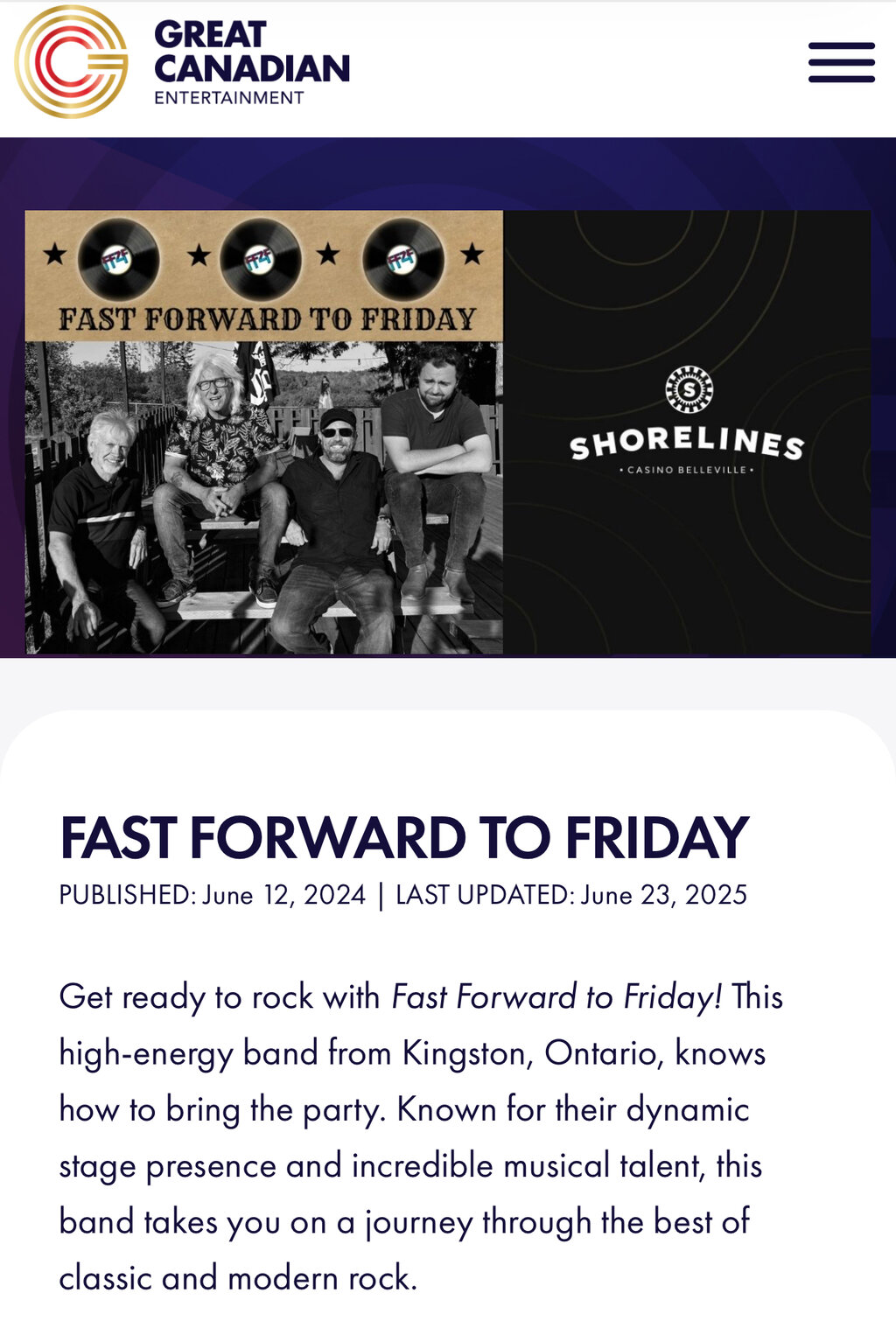 Don’t miss Fast Forward to Friday live at Shorelines Casino Belleville from 8PM-12AM on Saturday, July 26, 2025.