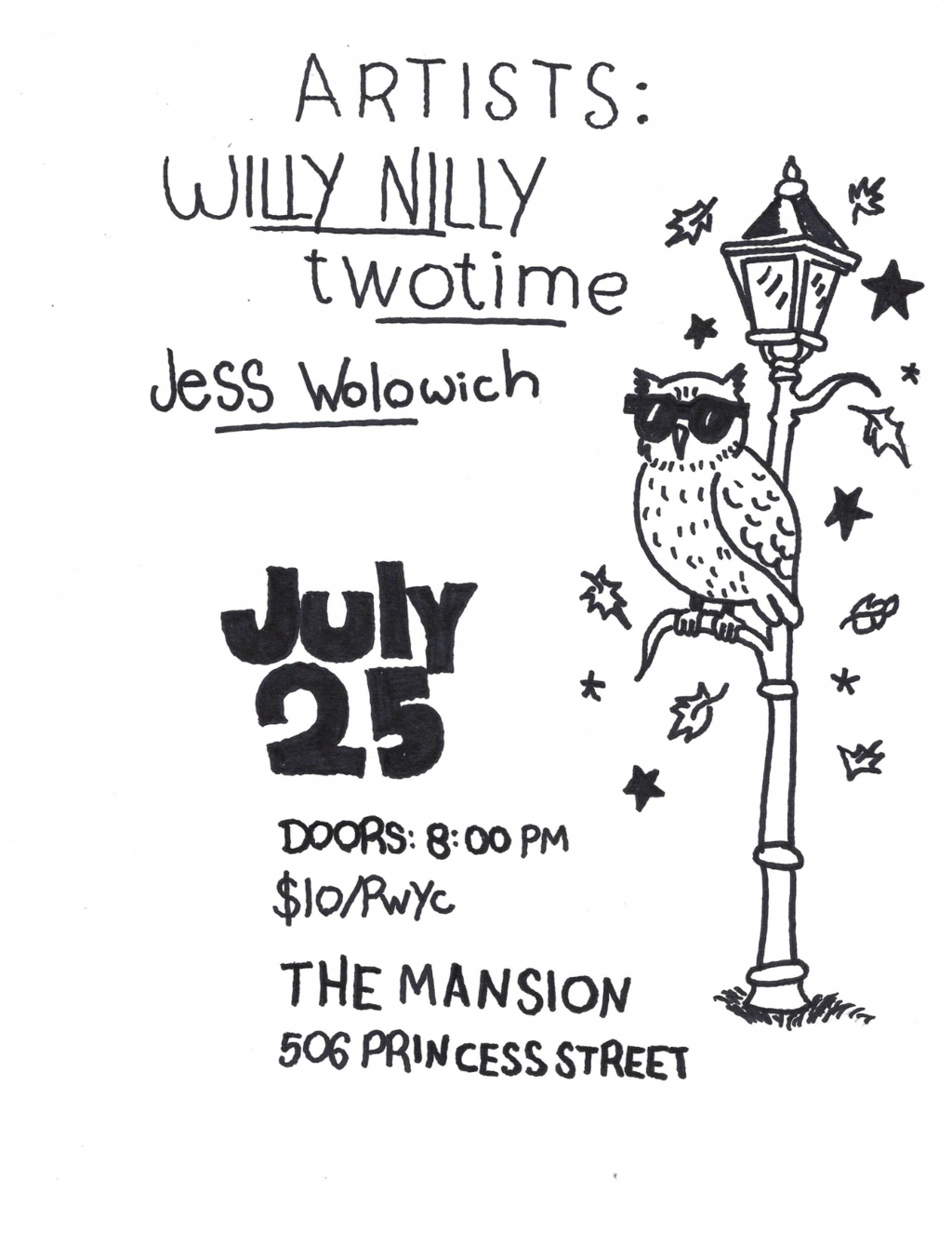 Willy Nilly, TwoTime, Jessica Wolowich @ The Mansion Jul 25 2025 - Feb 12th @ The Mansion