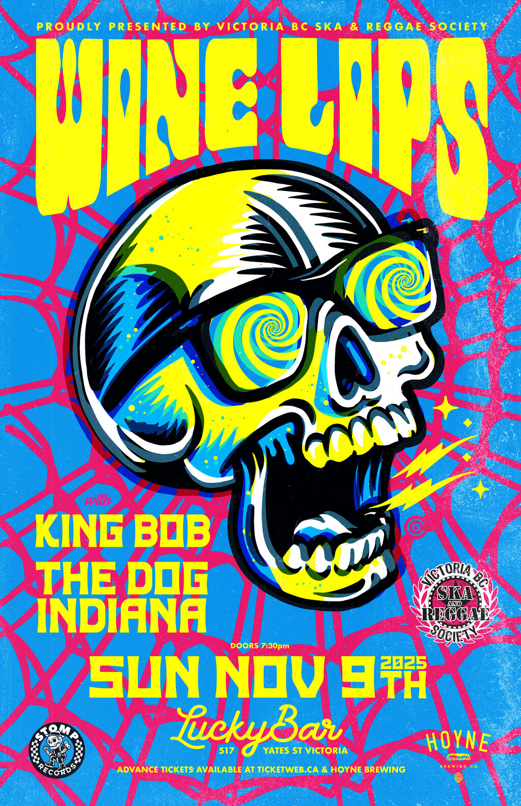 The Victoria Ska & Reggae Society presents an evening of punk, garage rock, and psych. Wine Lips with guests King Bob and The Dog Indiana.