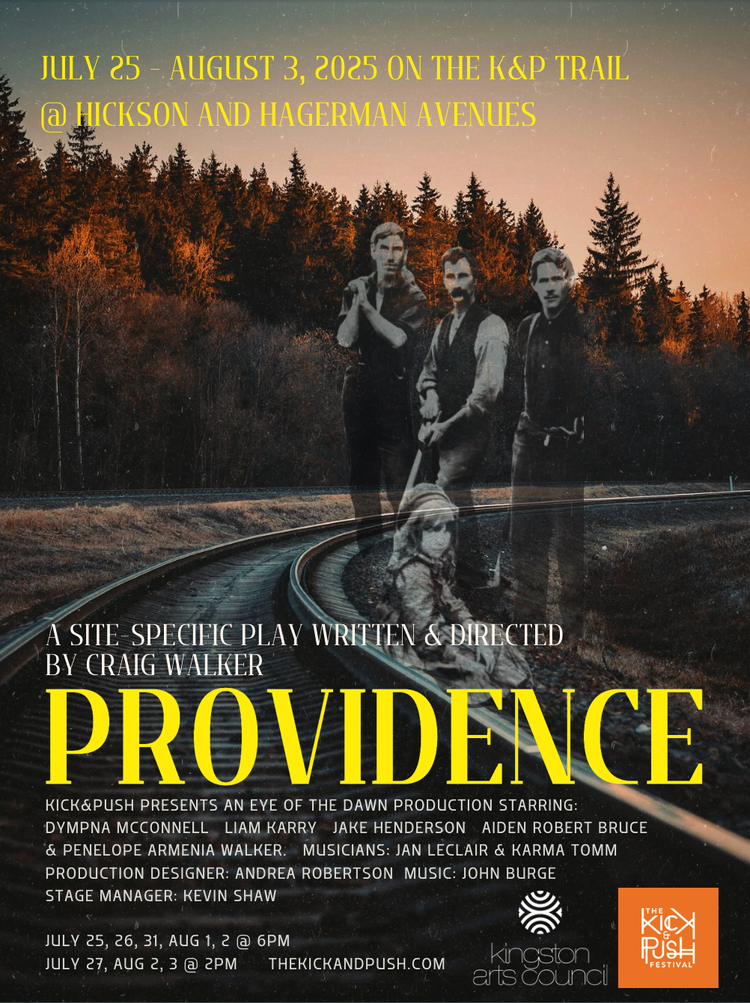 At the Binnington Court entrance to the K&P Trail is an information sign explaining that the trail is named after the Kingston and Pembroke Railway (known locally as the Kick and Push). On the back is a photograph of a small work crew, including three men, and surprisingly, seated before them, a young girl. Musing on who these people were, and why the photograph was taken—was the beginning of the play Providence.
