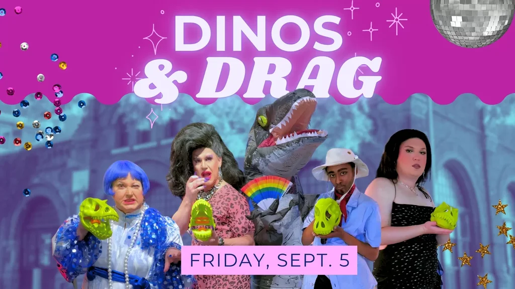 The PumpHouse is throwing open the doors for a fabulous after-hours event that’s serving claws, contour, and cretaceous couture. Dinos & Drag invites you to explore the museum after dark, sip on themed cocktails, and enjoy unforgettable drag performances—all set against the backdrop of our latest exhibition, Dinosaurs Among Us.