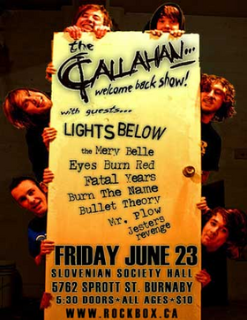 Callahan welcome back show with:: Callahan, Fatal Years, Eyes Burn Red, Burn The Name, the Mary Belle Van, Bullet Theory, Mr. Plow, Jester's Revenge @ Slovenian Society Hall Jun 23 2006 - Feb 13th @ Slovenian Society Hall