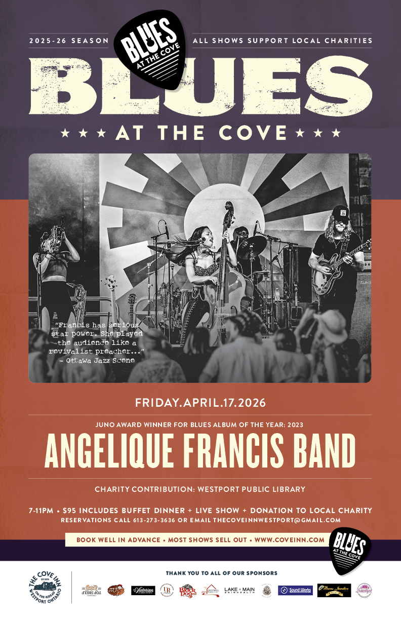 Imagine a warm, intimate venue setting in a historic waterside inn on the Rideau Canal featuring a tasty buffet dinner and a donation to a local charity and you have Blues at The Cove! Join us for the new season!