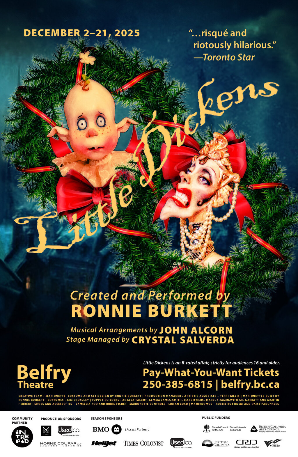 Ronnie Burkett is a one-of-a-kind—a national treasure. He mesmerizes and amazes me every time I see his work—! As a Christmas Carol aficionado—this is a version I could never have imagined—it’s wild and out-of-control. Half the fun is watching Ronnie work his magic, the other half is enjoying the shock of this irreverent, lascivious circus—!