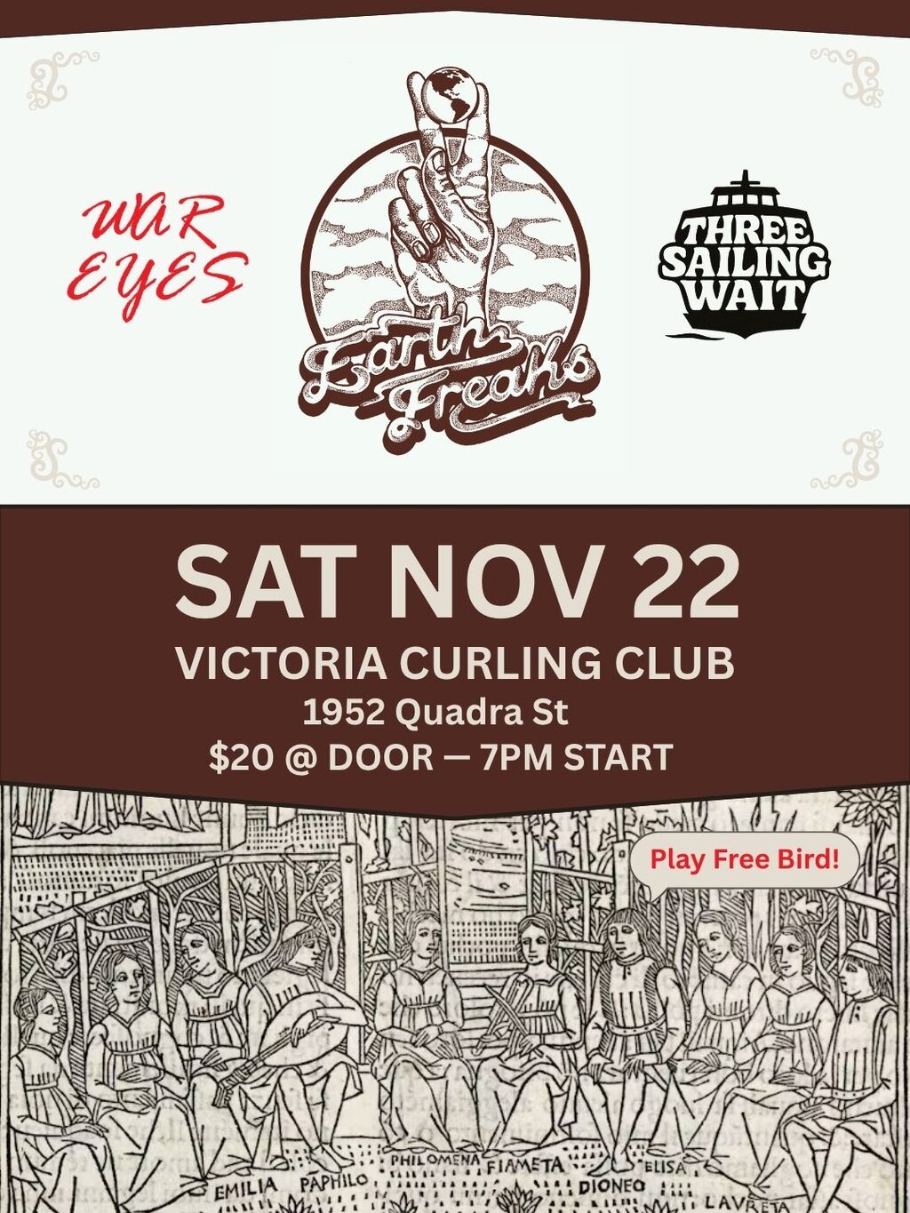 Join these three local bands to rock out at the Victoria Curling Club on Saturday, November 22. Cover is $20 and the show starts at 7pm. See you there!